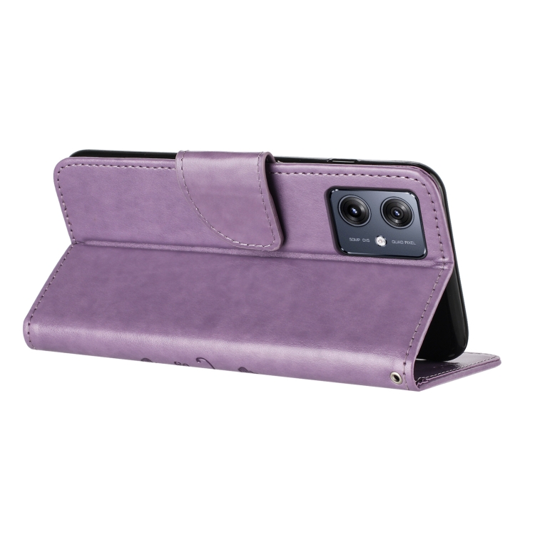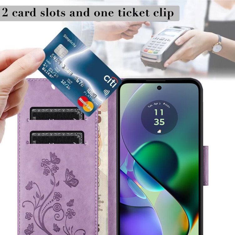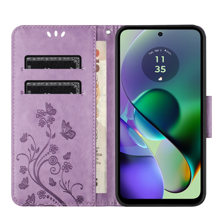 Funda de Cuero con Tapa para Motorola Moto G55 con Diseño de Flores y Mariposas (Morado Claro)