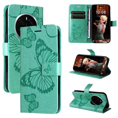 Funda de Cuero con Tapa y Mariposa en Relieve 3D para Honor Magic7 Pro (Verde)