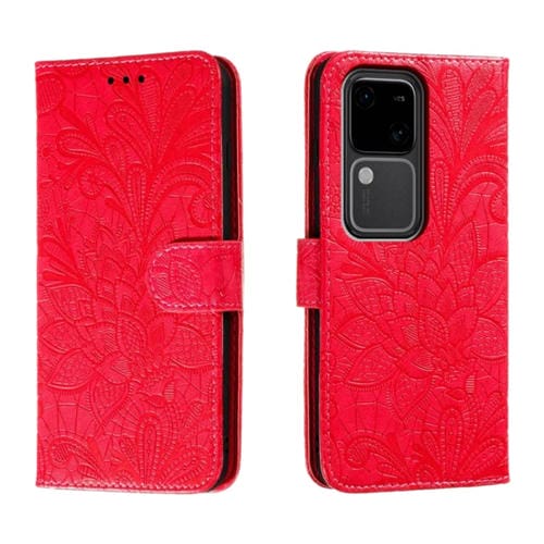Funda de Cuero con Tapa y Estampado de Flores de Encaje para Vivo S18 (Rojo)
