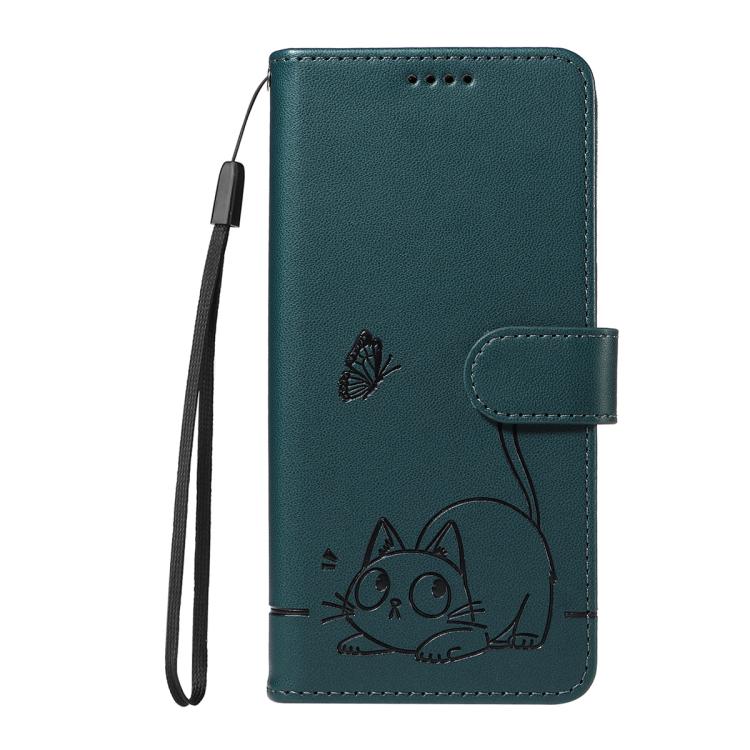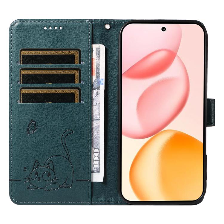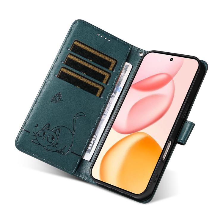Funda de cuero con tapa y estampado de gato adorable para Honor 400 Global (156,5 mm) (verde oscuro)
