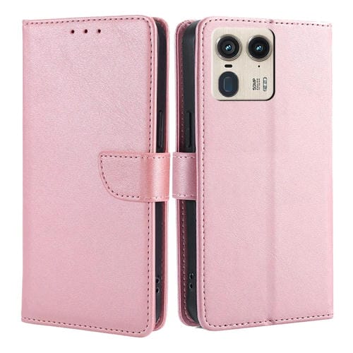 Funda de Cuero con Tapa y Hebilla Textura Becerro para Motorola Edge 50 Ultra (Oro Rosa)