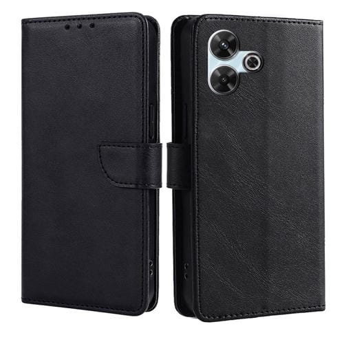 Funda de Cuero con Tapa y Hebilla con Textura de Piel de Becerro para Redmi 13 4G (Negra)