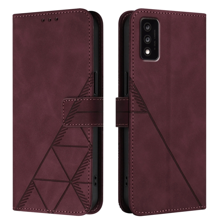 Funda de Cuero con Tapa y Relieve 3D para Teléfono TCL 30T/T603Dl (Rojo Vino)