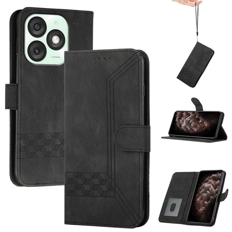 Funda de Cuero con Tapa y Tacto de Piel Cúbica para Itel A50 (Negra)