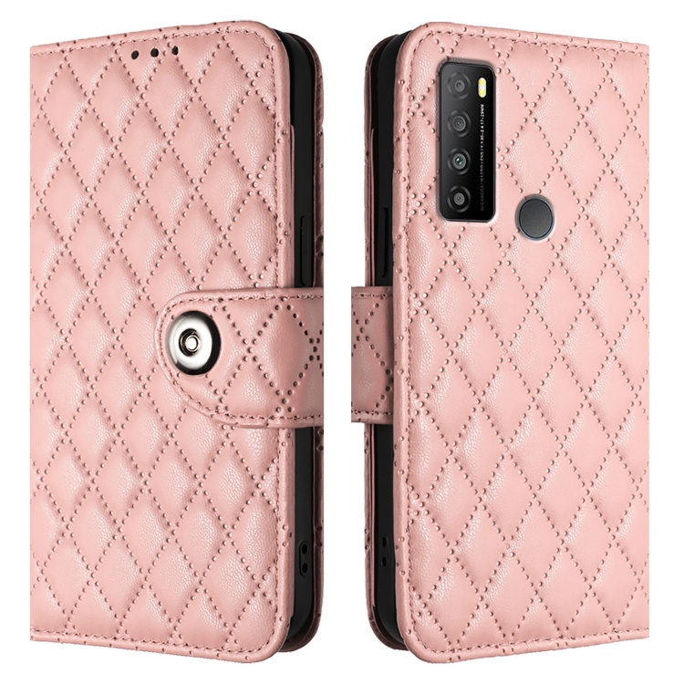Funda de Cuero con Tapa y Textura Rombal para TCL 30 Xl T701Dl con Cordón (Rosa Coral)