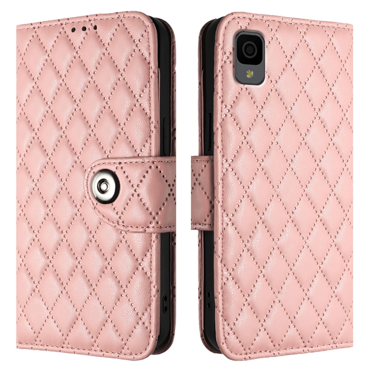 Funda de Cuero con Tapa y Textura Rombal para TCL 30Z T602Dl con Cordón (Rosa Coral)