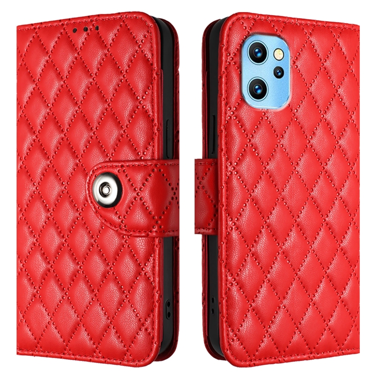 Funda de Cuero con Tapa y Textura Rombal para Umidigi Power 7 Max con Cordón (Rojo)
