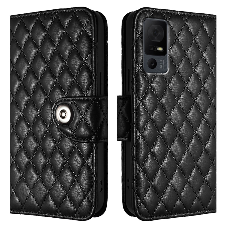 Funda de Cuero con Tapa y Textura Rómbica para TCL 40 XL/40 T T608DL con Cordón (Negro)