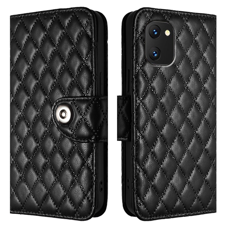 Funda de Cuero con Tapa y Textura Rómbica para Umidigi Power 7/Power 7S con Cordón (Negro)