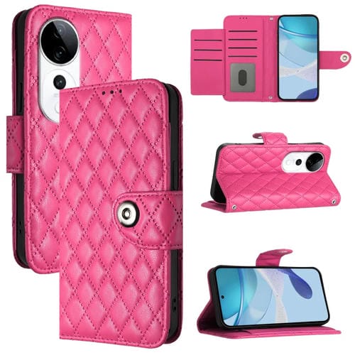 Funda de Cuero con Tapa y Textura Rómbica para Teléfono Vivo S19 Pro con Cordón (Rosa Rojo)