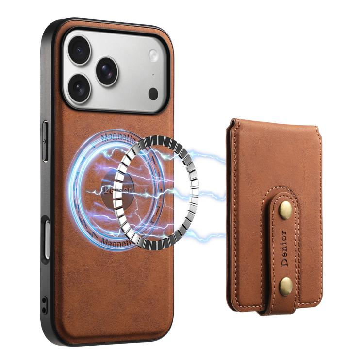 Funda de cuero con tarjetero magnético MagSafe para iPhone 17 Pro Max Denior D14 NK con diseño retro (marrón)