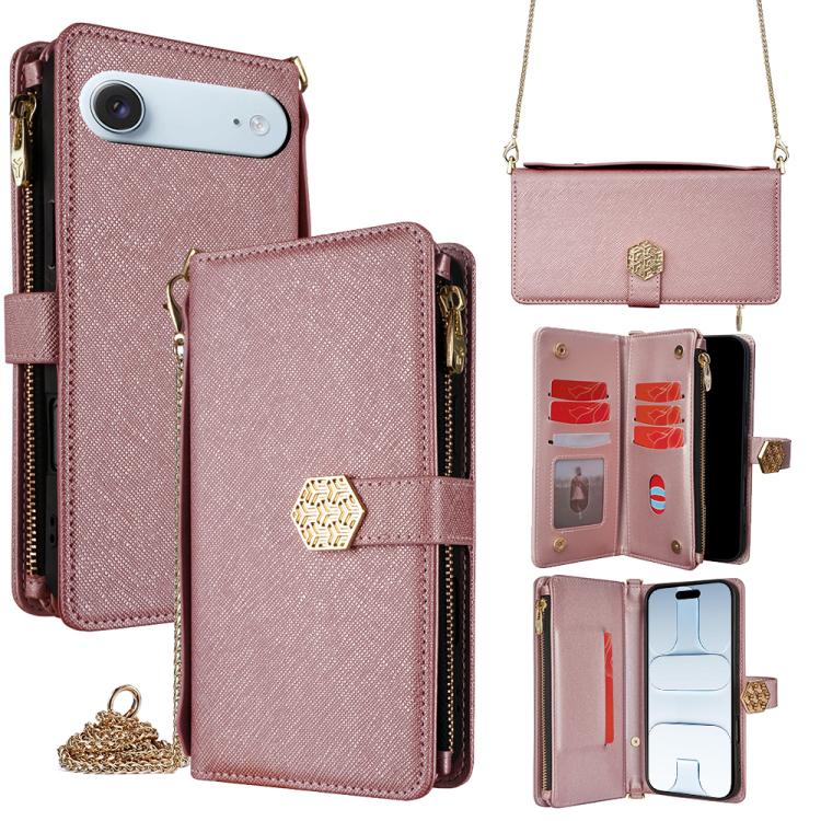 Funda de cuero con textura cruzada y asa cruzada para iPhone Air (oro rosa)