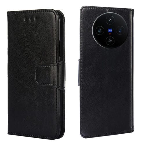 Funda de Cuero con Textura de Cristal para Teléfono Vivo X100S (Negra)