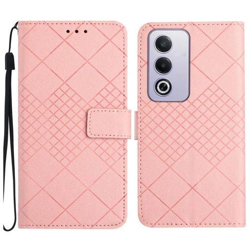 Funda de Cuero con Textura de Cuadrícula Rómbica para Oppo A3 Pro 5G India/K12X 5G Global (Rosa)