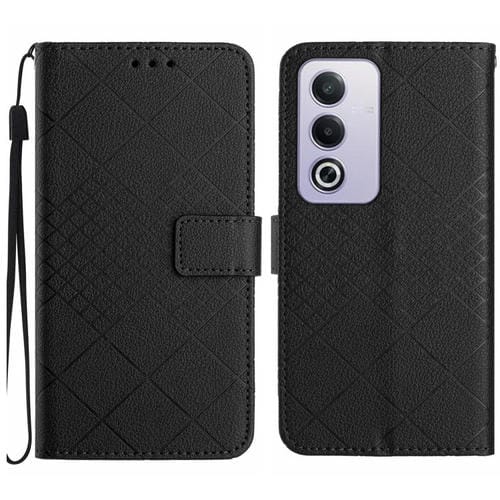Funda de Cuero con Textura de Cuadrícula Rómbica para Teléfono Oppo A3 Pro 5G India/K12X 5G Global (Negra)