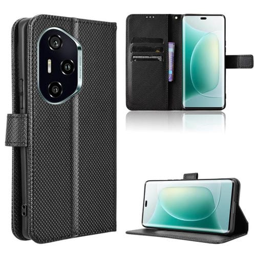 Funda de Cuero con Textura de Diamante para Honor 300 Pro 5G y 300 Ultra 5G (Negra)