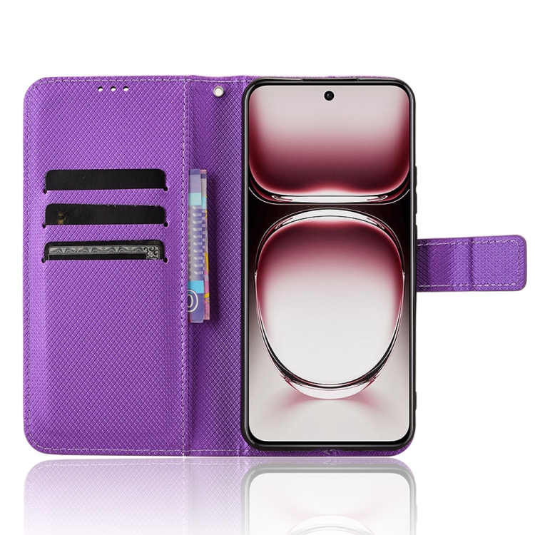 Funda de Cuero con Textura de Diamante para Oppo Reno12 5G Global (Morado)
