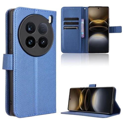 Funda de Cuero con Textura de Diamante para Vivo X100 Ultra 5G (Azul)