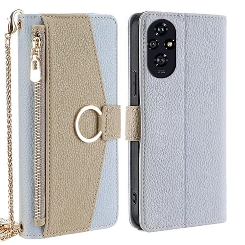 Funda de Cuero con Textura de Lichi para Honor 200 5G con Diseño Cruzado (Azul)