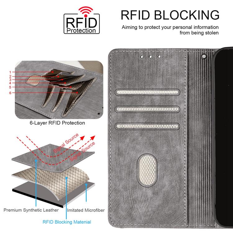 Funda de cuero con textura de piel y bloqueo RFID para Redmi A5 4G (171,7 mm, gris)