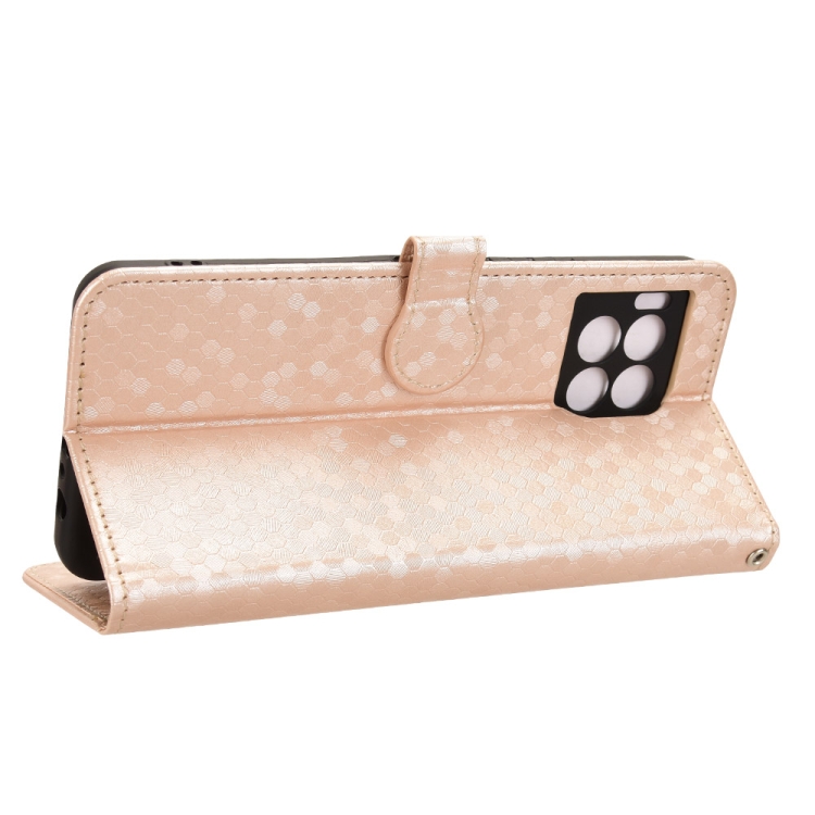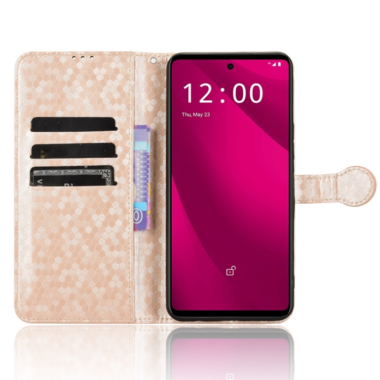 Funda de Cuero para T-Mobile Revvl 7 Pro 5G con Textura de Puntos en Panal (Dorada)