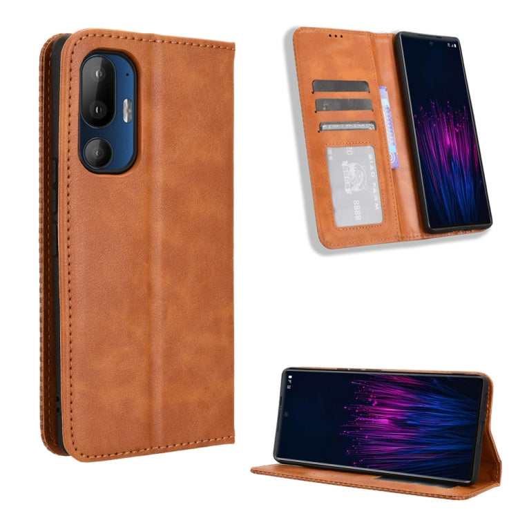 Funda de Cuero HTC U24 Pro con Textura Retro y Hebilla Magnética (Marrón)