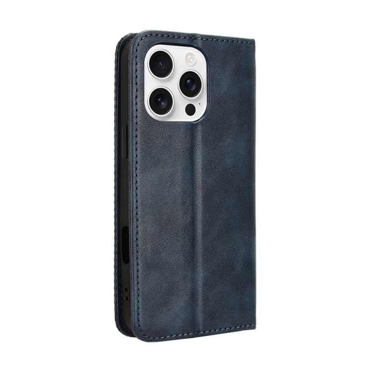 Funda de Cuero con Textura Retro y Hebilla Magnética para iPhone 16 Pro Max (Azul)