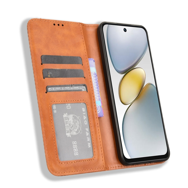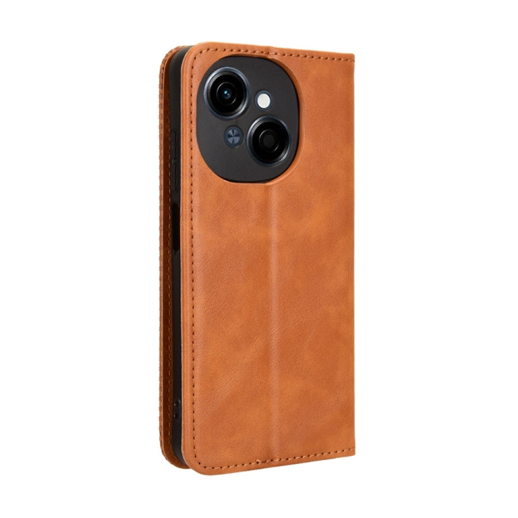Funda de Cuero Textura Retro con Hebilla Magnética para Tecno Spark Go 1 / Pop 9 / Spark Go 2025 (Marrón)
