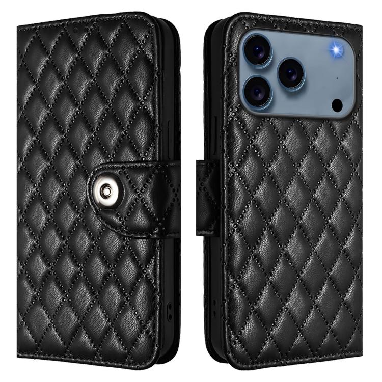 Funda de cuero con textura rómbica y cordón para iPhone 17 Pro Max (negra)