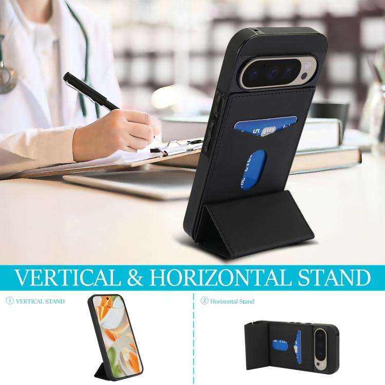 Funda de Cuero con Tres Pliegues y Ranura para Tarjetas para Google Pixel 9/9 Pro (Negro)