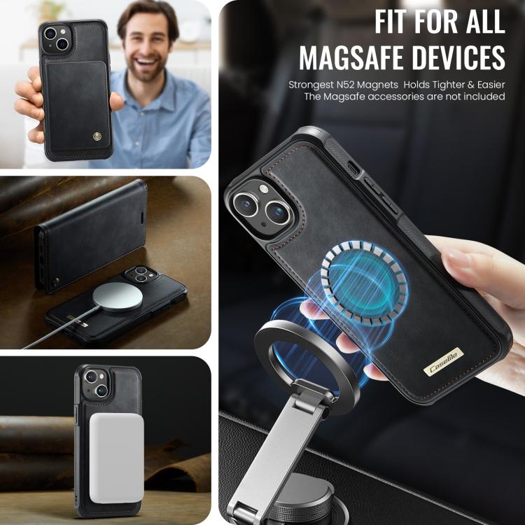 Funda de cuero desmontable CaseMe C49 con bloqueo RFID MagSafe para iPhone 13 (negra)
