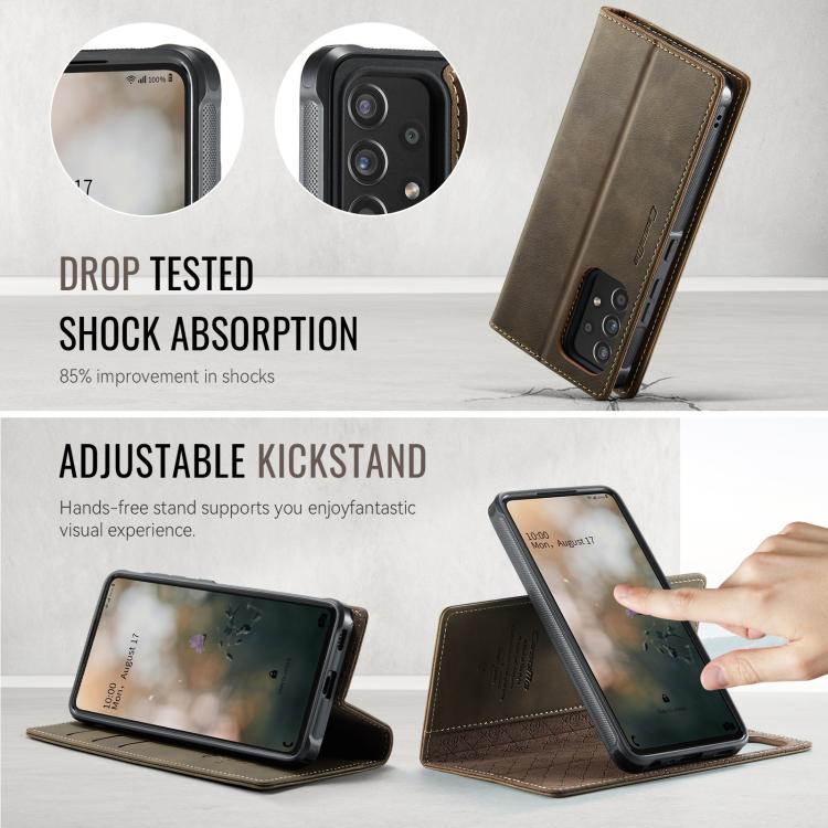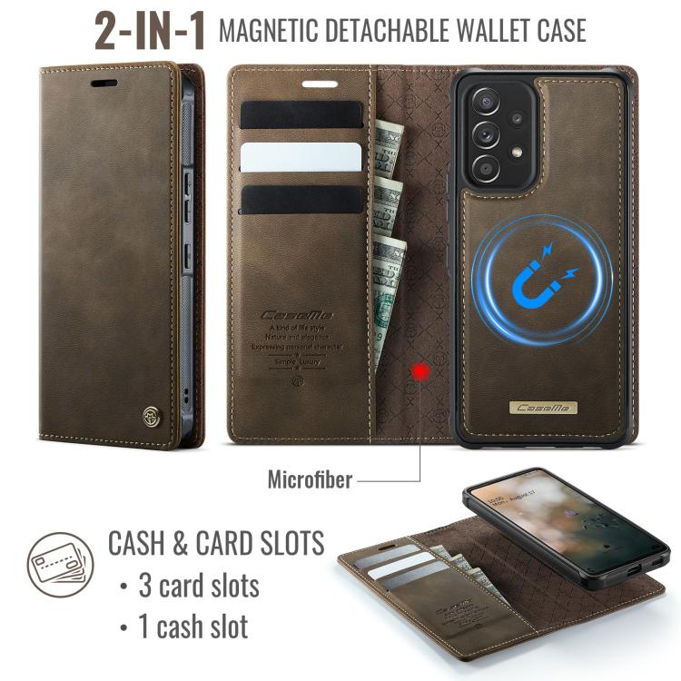 Funda de cuero desmontable con bloqueo RFID magnético para Samsung Galaxy A53 5G CaseMe C49 (café)