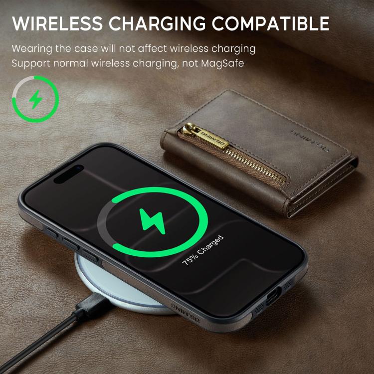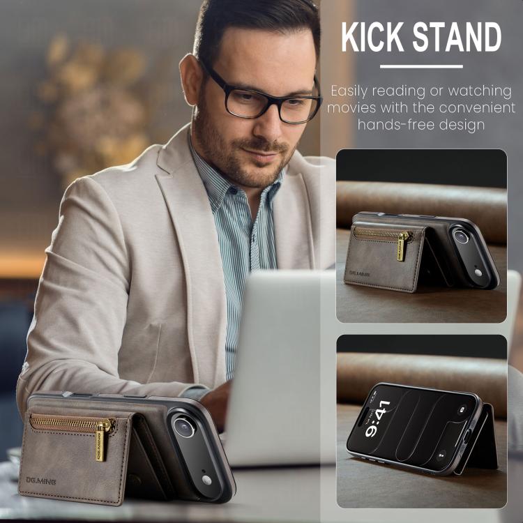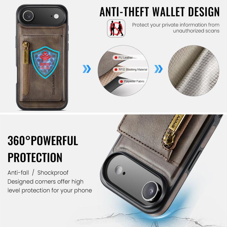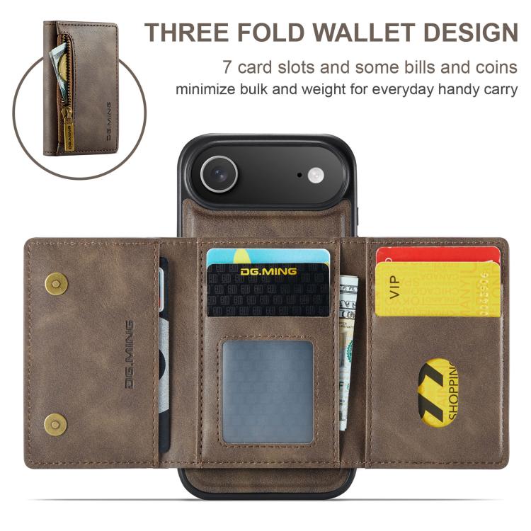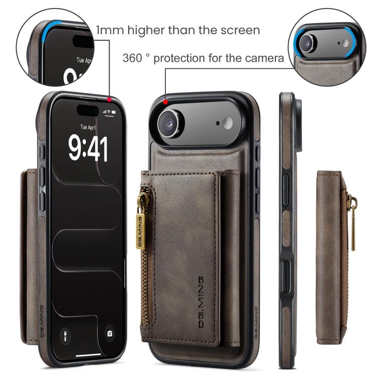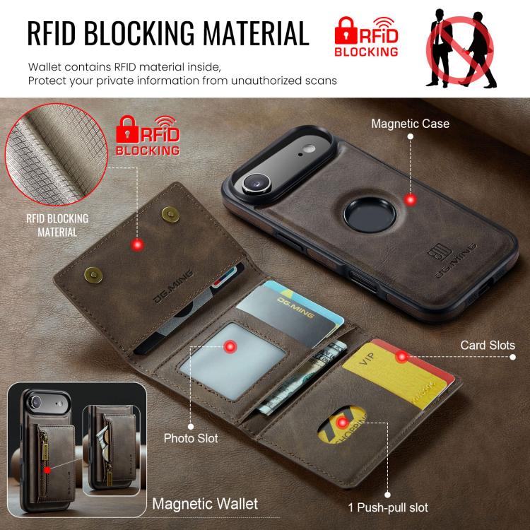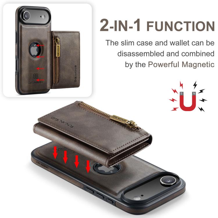 Funda de cuero desmontable con cremallera RFID para iPhone Air DG.MING M5 Series (café)