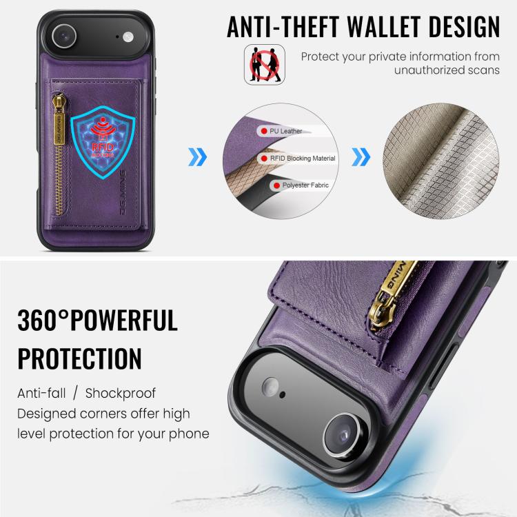 Funda de cuero desmontable con cremallera RFID para iPhone Air DG.MING M5 Series (morado)