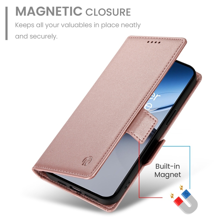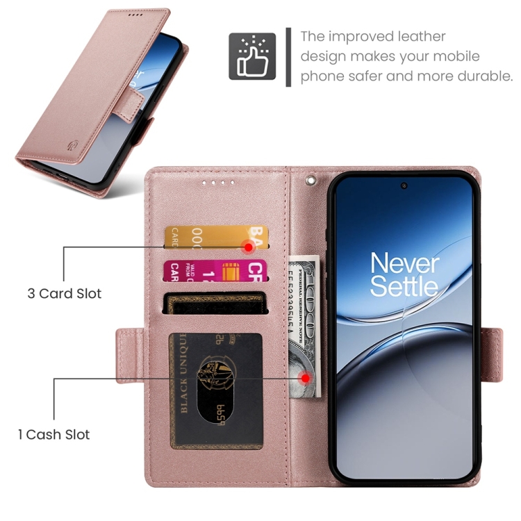 Funda de Cuero Esmerilado con Hebilla Magnética para OnePlus Nord 4 5G (Oro Rosa)