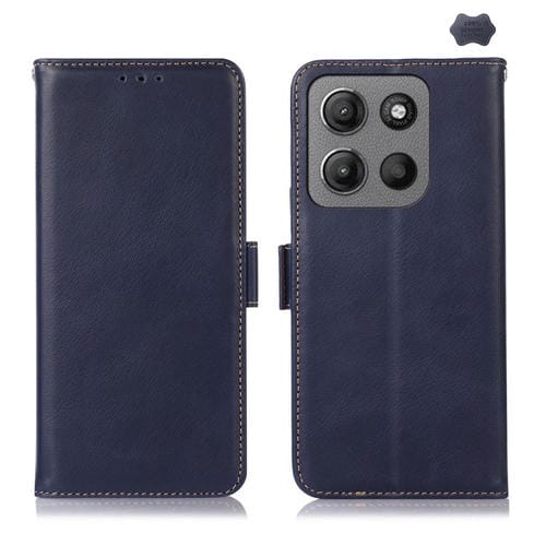 Funda Cuero Genuino Crazy Horse Magnética para Motorola Moto G15 4G (Azul)