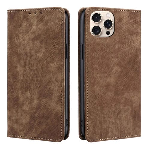 Funda de Cuero Magnética con Cepillo Antirrobo Rfid para iPhone 16 Pro (Marrón)