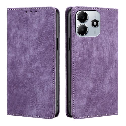 Funda de Cuero Magnética con Cepillo Antirrobo Rfid para Redmi Note 14 5G (Morado)