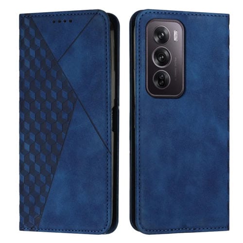 Funda de Cuero Magnética con Diseño de Empalme de Diamantes para Oppo Reno12 Pro (Azul)