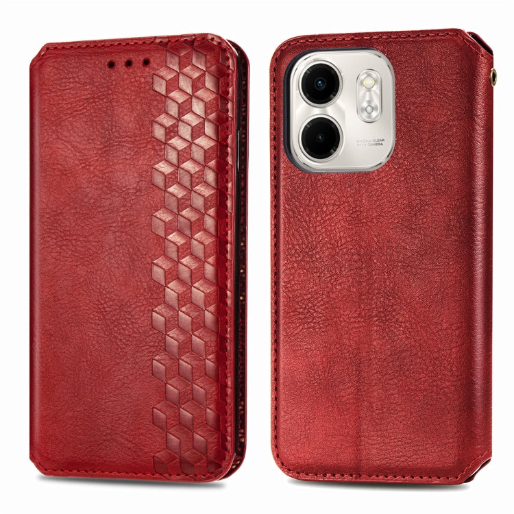 Funda de Cuero Magnética con Rejilla Cúbica Prensada para Infinix Smart 9 (Roja)
