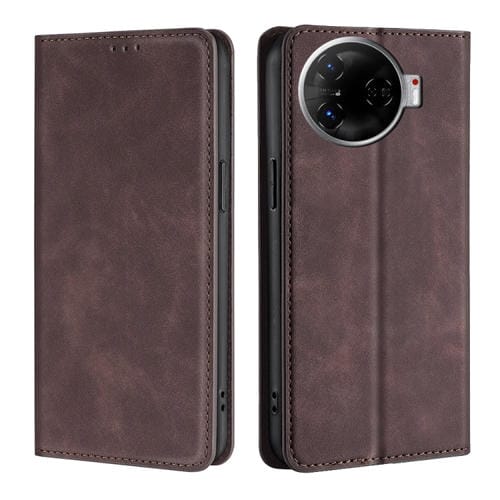 Funda de Cuero Magnética para Tecno Camon 30 Pro 5G con Tacto de Piel (Marrón Oscuro)