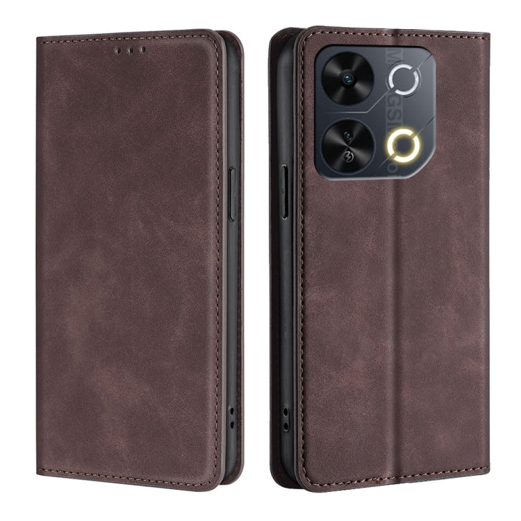 Funda de Cuero Magnética para Teléfono Itel P65 (Marrón Oscuro) con Tacto de Piel