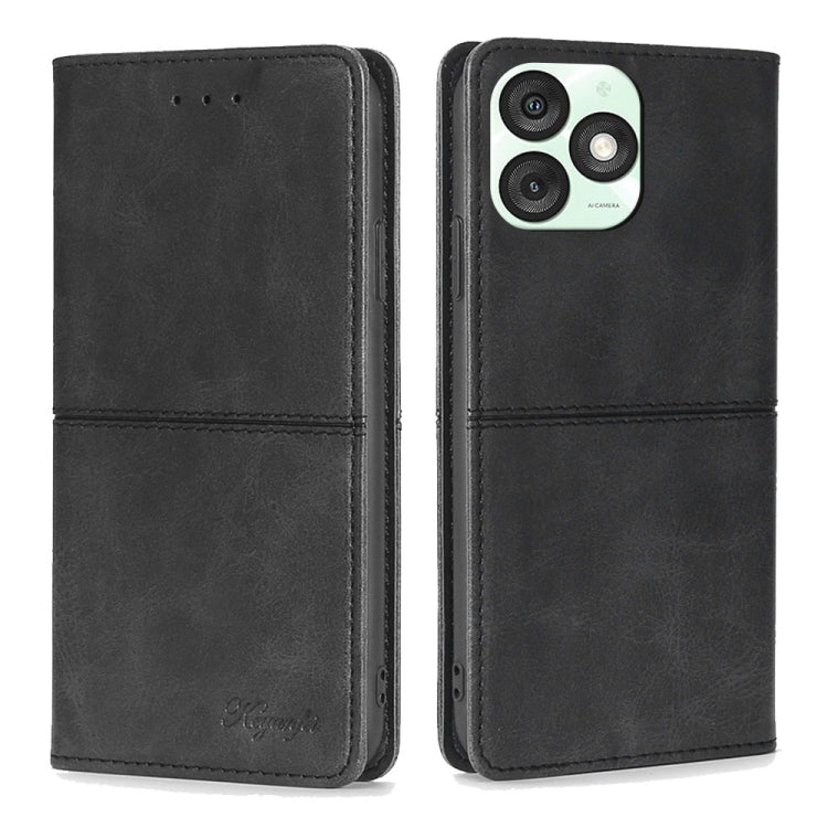 Funda de Cuero Magnética con Textura de Vaca para Itel A50 4G (Negra)