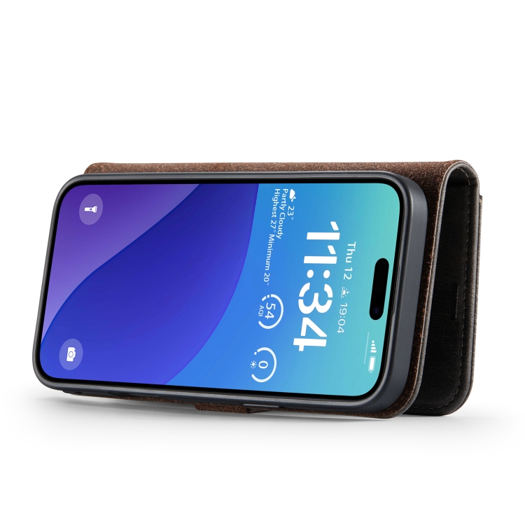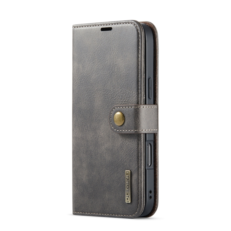 Funda Cuero Magnética Desmontable Dg.Ming iPhone 16 Pro Max Textura Crazy Horse (Gris)