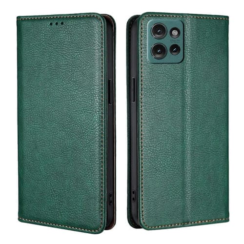Funda de Cuero Magnética para Motorola Edge 50 5G con Acabado Brillante y Aceite Sólido (Verde)