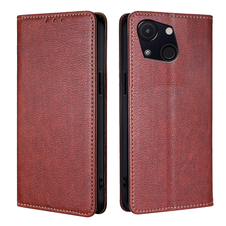 Funda de Cuero Magnética para Teléfono Itel A50C 4G con Acabado Brillante (Marrón)