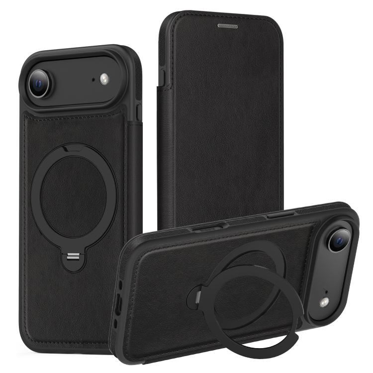 Funda de cuero MagSafe RFID para iPhone Air Knight Shield con rotación de 360 grados (negro)