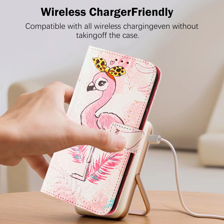 Funda de Cuero para iPhone 16 Pro con Diseño de Dibujo Artístico (Flamenco)