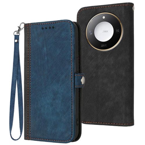Funda de Cuero para Honor X60/X9C con Correa de Mano Plegable y Hebilla Lateral (Azul Real)
