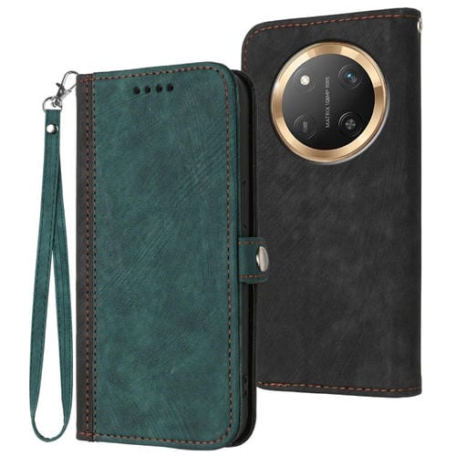 Funda de Cuero para Honor X9C Global con Correa y Hebilla Doble Plegable (Verde Oscuro)
